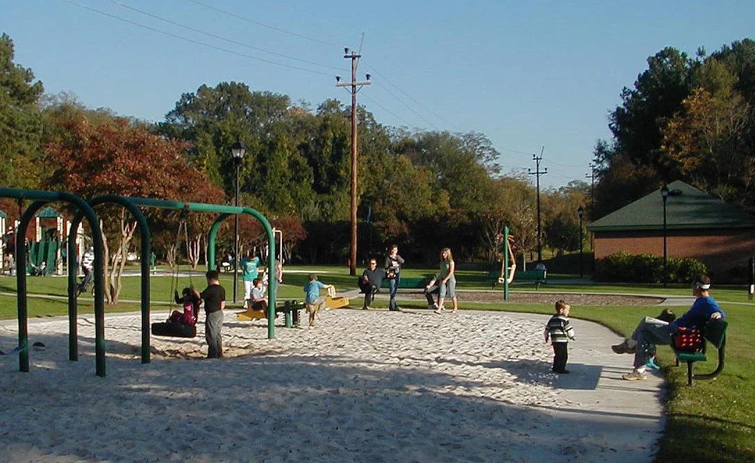 The park consists of two large playgrounds filled with white sand that include slides, climbing apparatus, and age appropriate play equipment. Additionally there is a large swing set and teeter-totter area. There is also a large covered pavilion sponsored by CountyBank.